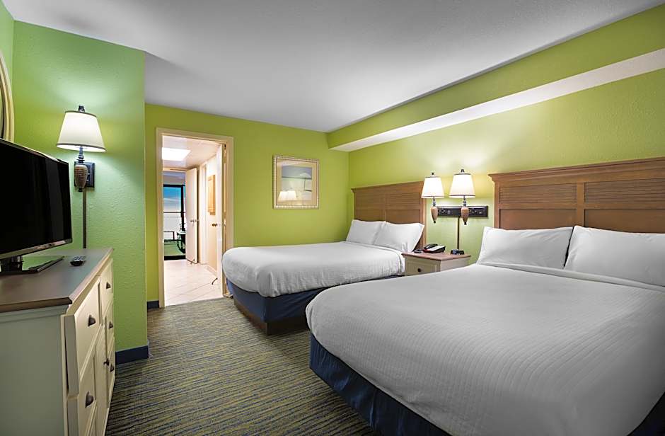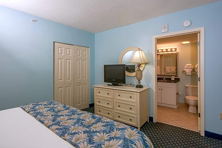 This spacious villa is located in the Caribbean Resort Myrtle Beach and features an oceanfront balcony, living area with a sofa bed, full kitchen, and laundry facilities.